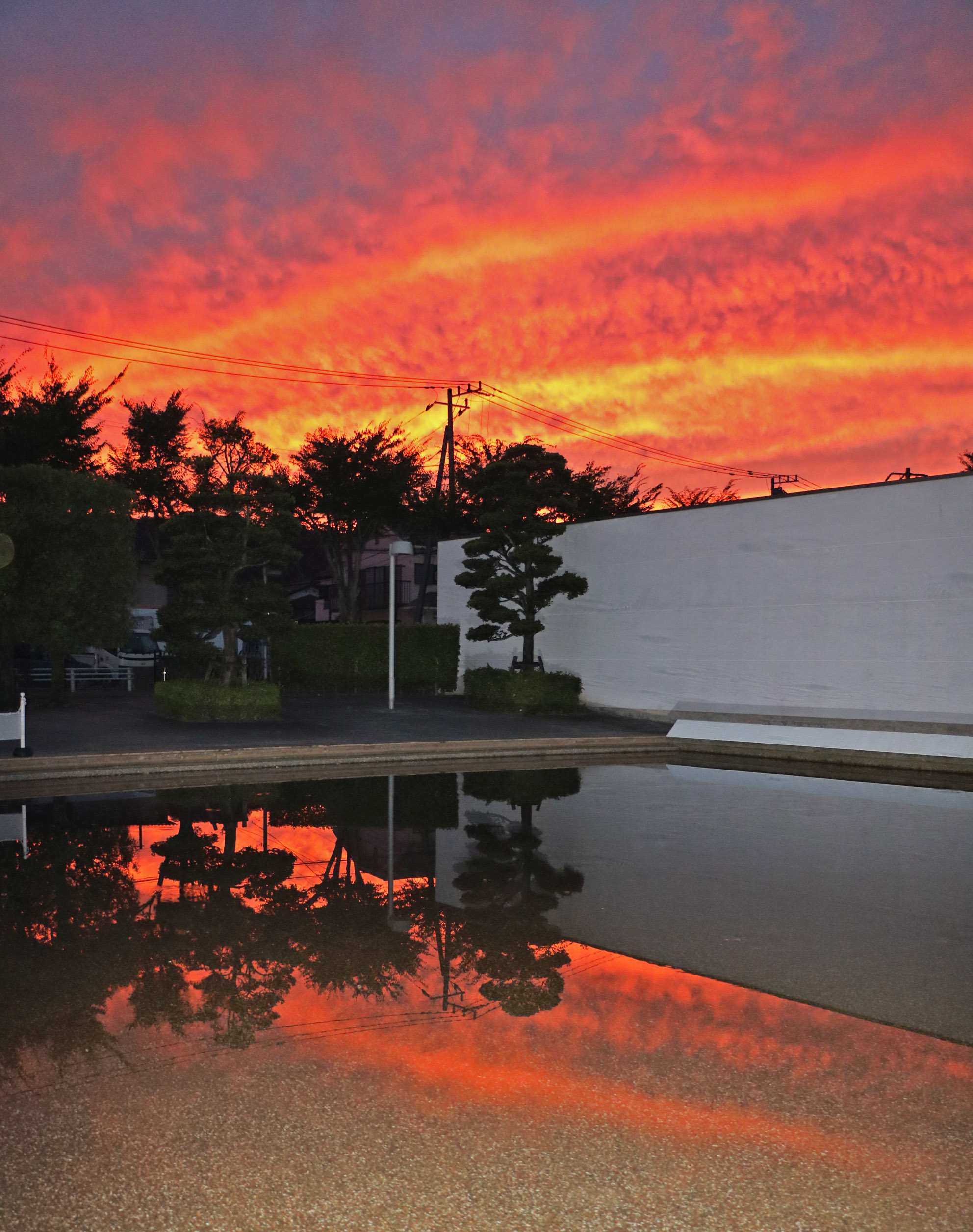 そんな夏でしたが、先日、事務所からきれいな夕日を見ることができました。