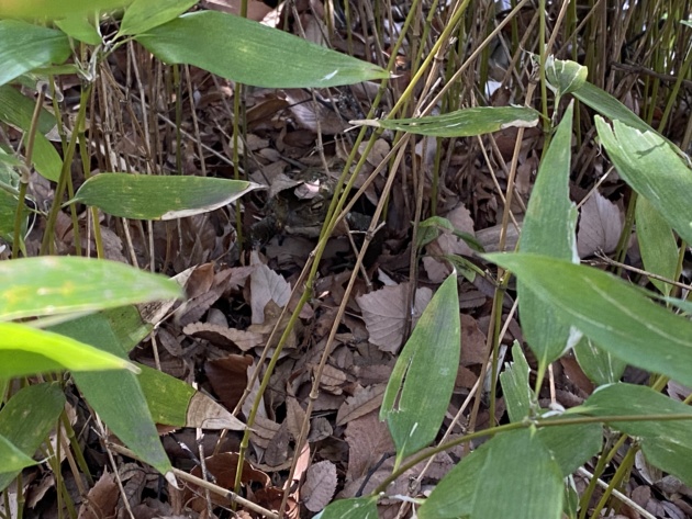 なんと!落ち葉が頭の上にのっていたので、より一層、草むらに紛れ込んでいました。