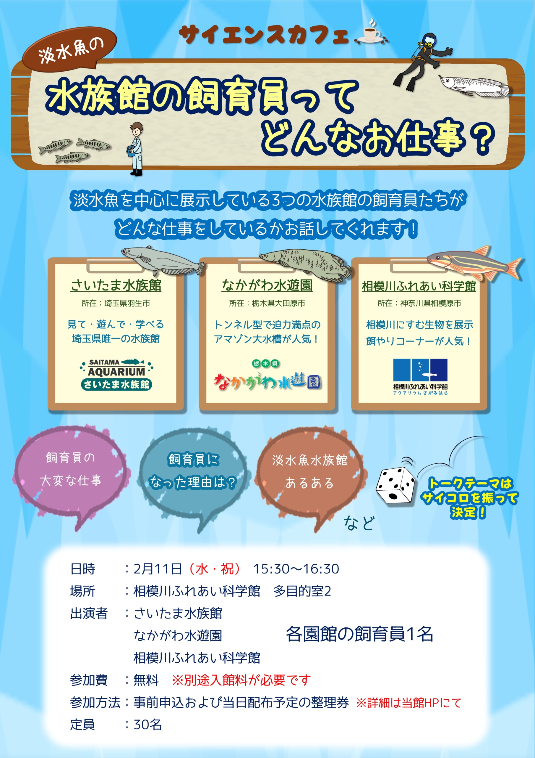 館内イベント『サイエンスカフェ』「淡水魚の水族館の飼育員ってどんなお仕事?」を開催いたします。