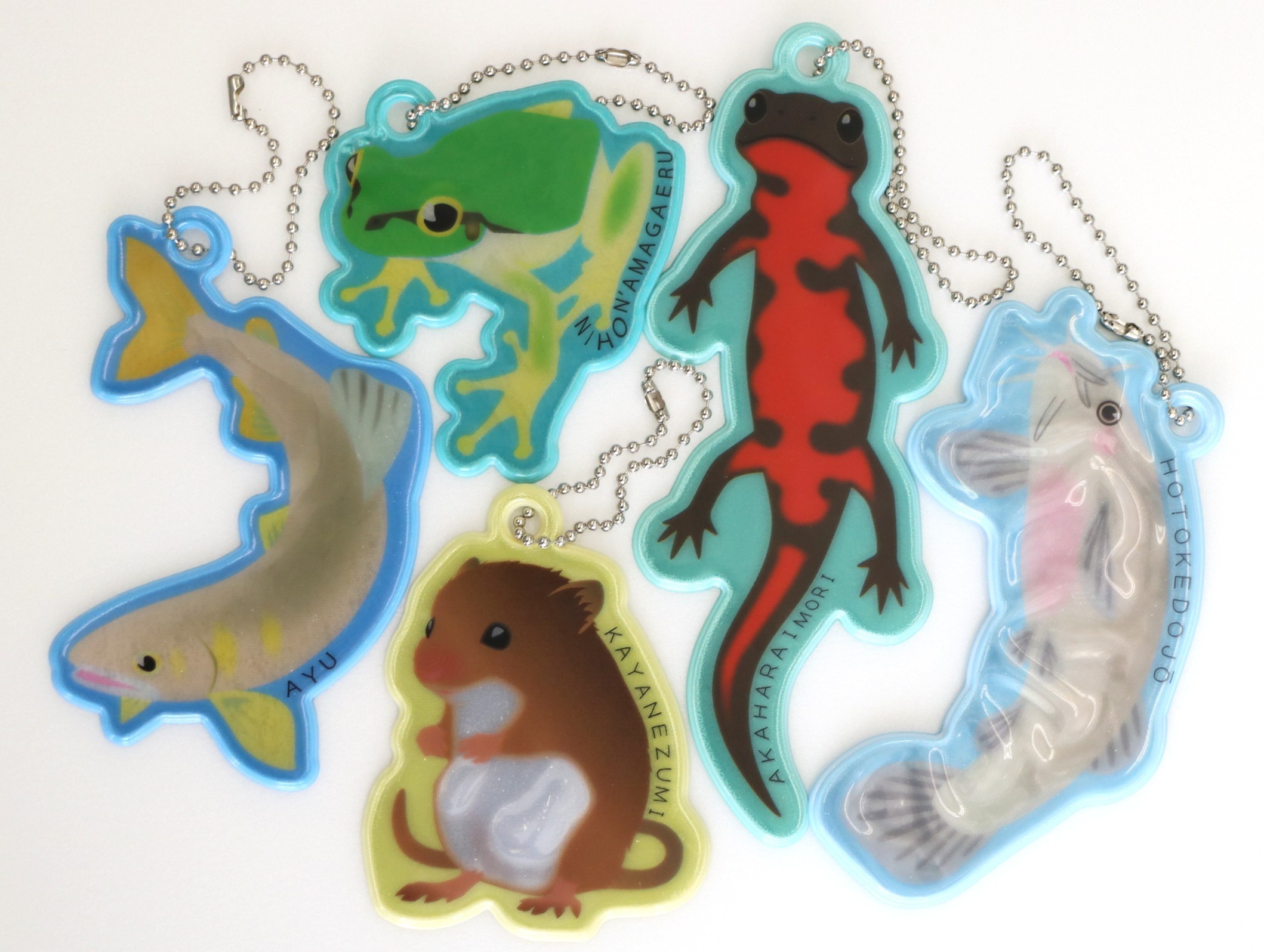 アカハライモリ、ホトケドジョウ、カヤネズミ、ニホンアマガエル、アユ 後ろ姿にもこだわりました♪ 全5種類